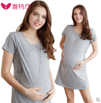 雅特茂 孕婦春裝短袖莫代爾連衣裙夏季哺乳睡衣產(chǎn)婦睡裙家居..